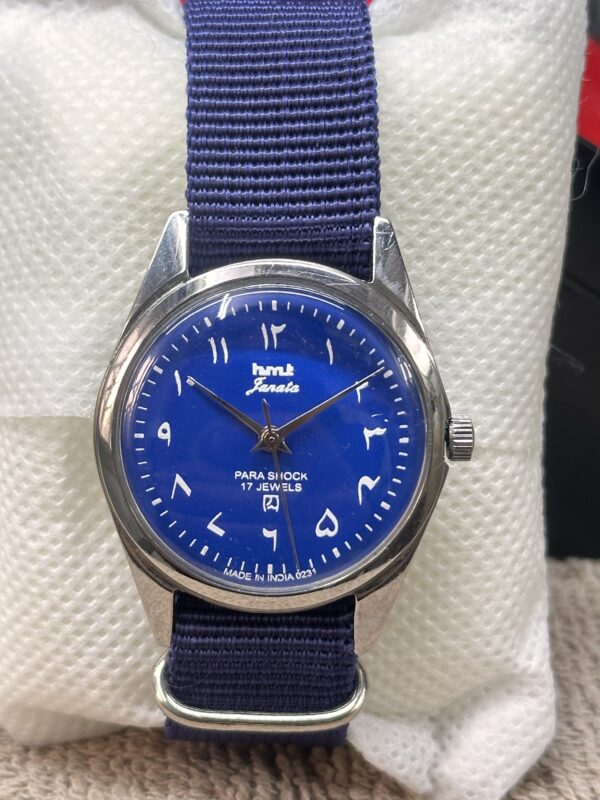 HMT Janata Arabic Edition Vintage 17J Hand Winding 36mm Blue Dial Mens Watch SS.