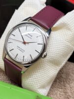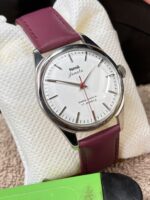 Complementing the dial is a stylish pink faux leather band that adds a modern touch while maintaining comfort and durability. This unique strap combination enhances the overall aesthetic and makes the watch stand out while remaining elegant and wearable. Designed specifically for men, this timepiece blends heritage design with subtle contemporary character.