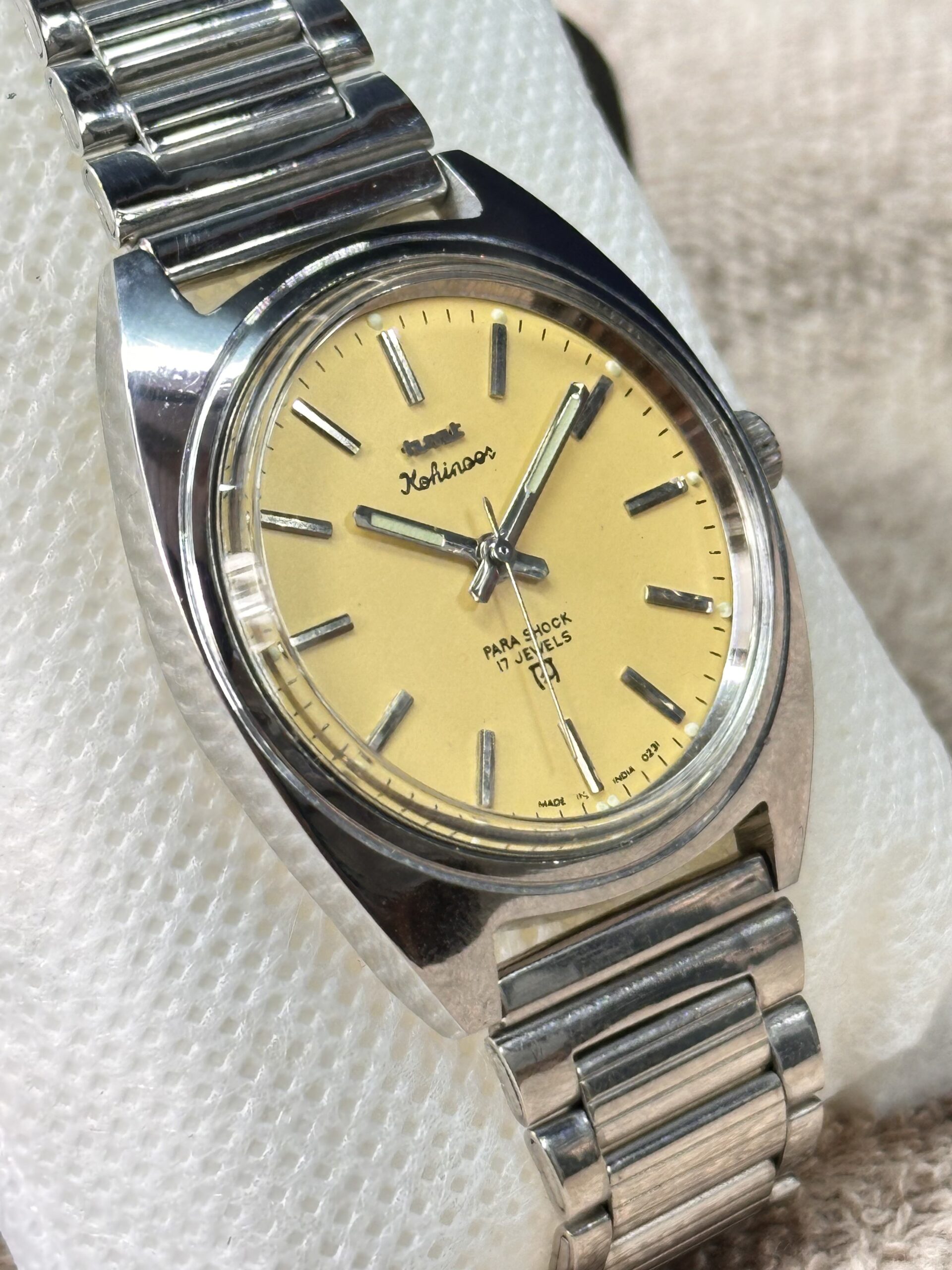 HMT Kohinoor Hand Winding 36mm Yellow Dial Vintage Men’s Watch Steel India