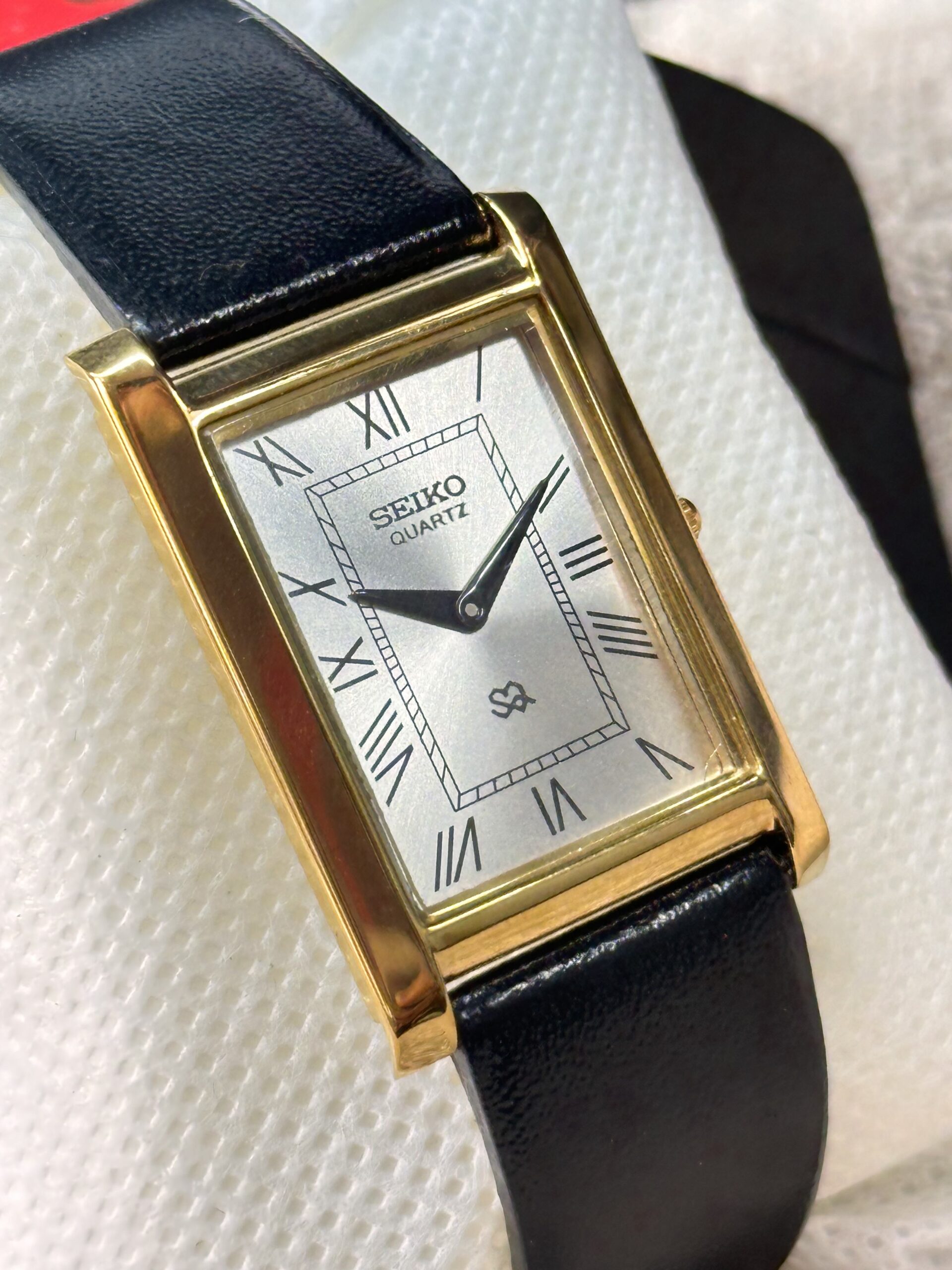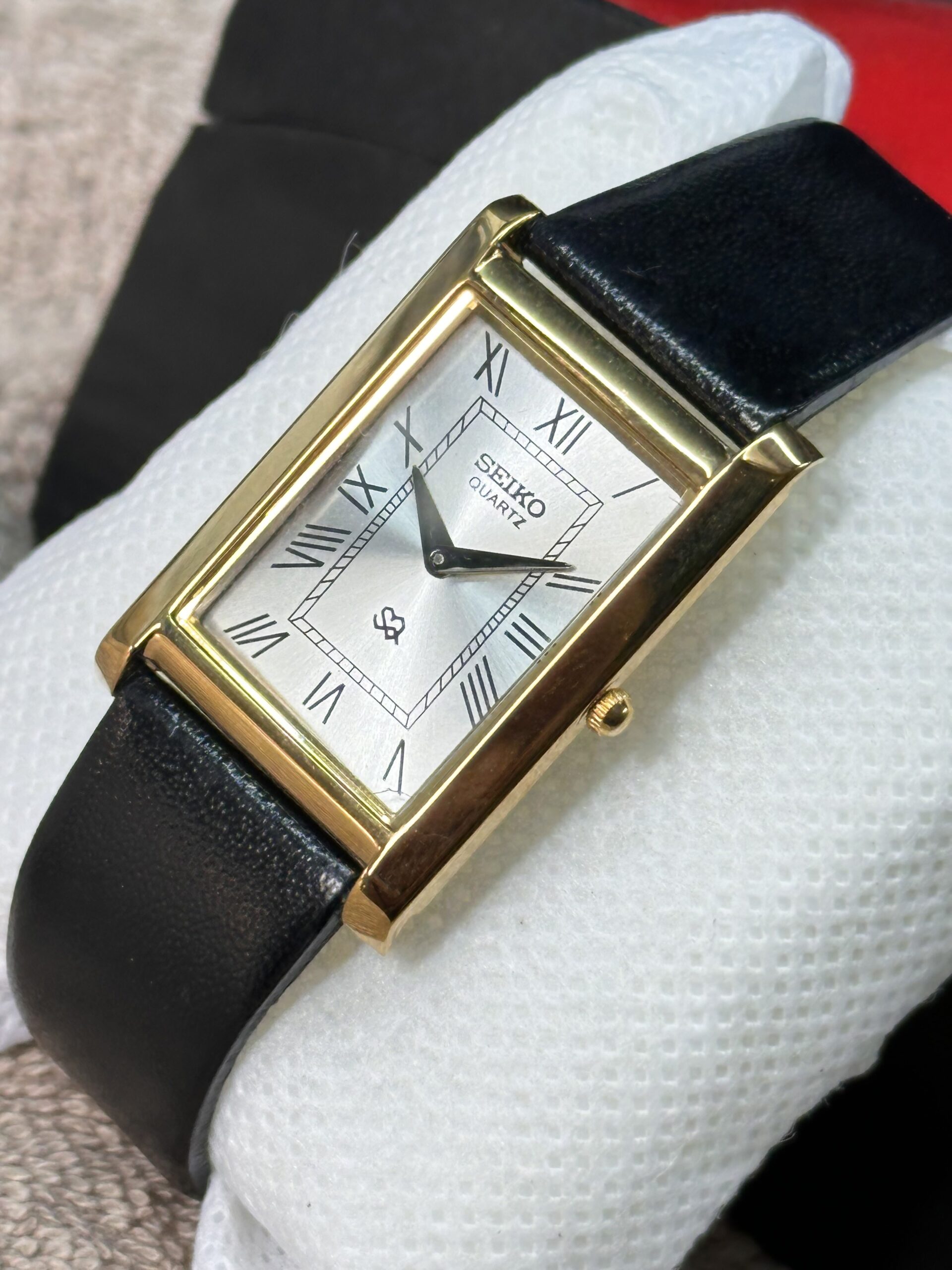 Brand: Seiko. Model: Seiko Tank. Movement: Quartz. Case Material: Gold Plated. Gender: Unisex. Case Color: Gold. Band Material: Faux Leather. Band Color: Black. Dial Color: Silver. Case Size: 28mm excluding crown. Lug Width: 36mm. Strap Size: 20mm. Style: Casual, Classic, Dress/Formal. Country of Manufacture: Japan. This is a genuine vintage watch offering timeless rectangular design, reliable performance, collector appeal, and everyday elegance. Handling Time 2–3 Working Days after receive payment. Delivery Time 12–15 Working Days.,
