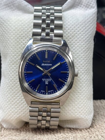 Vintage HMT Kohinoor Blue Dial 17 Jewels Hand Winding Men’s Watch 36mm Steel SS.