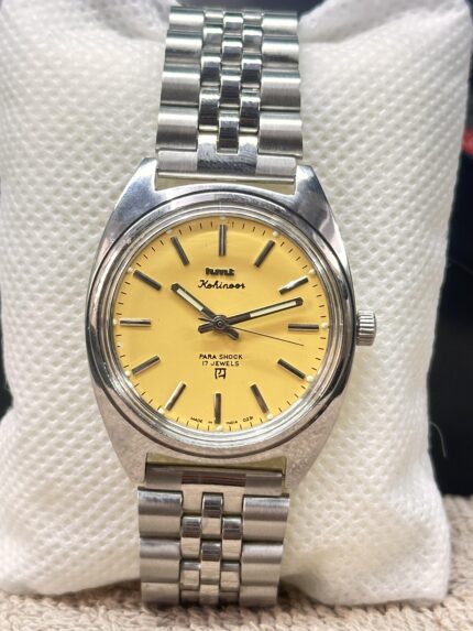 Vintage HMT Kohinoor 17 Jewels Hand Winding 36mm Mens Yellow Dial IndiaWatch SSS