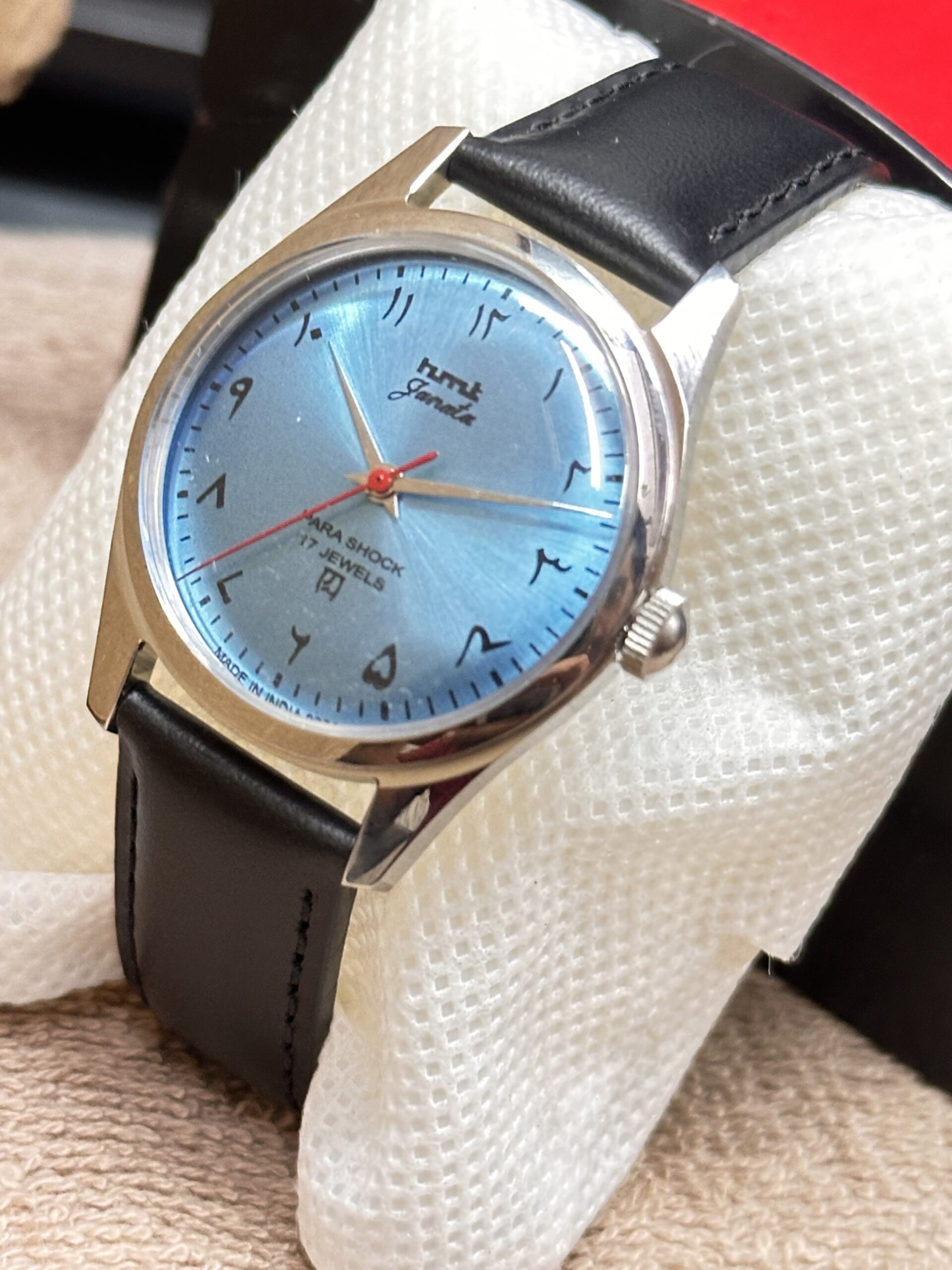 This authentic vintage HMT Janata Arabic Edition mens wristwatch represents timeless mechanical craftsmanship, classic heritage design, and everyday versatility, making it a perfect choice for vintage watch collectors, mechanical watch enthusiasts, and lovers of retro horology. Brand: HMT, Model: HMT Janata Arabic Edition, Jewels: 17 Jewels, Movement: Hand Winding Mechanical, Gender: Mens, Country of Manufacture: India. The elegant stainless steel case in a refined silver tone measures 36mm excluding crown, delivering a balanced and comfortable wrist presence ideal for casual, classic, and dress or formal occasions. Case Material: Stainless Steel, Case Color: Silver, Lug Width: 40mm ensures a confident vintage proportion and secure fit on the wrist. The striking blue dial combined with distinctive Arabic numerals offers a unique aesthetic appeal with clear readability and traditional character. Dial Color: Blue. The watch is paired with a durable and stylish faux leather strap in classic black, providing comfort, flexibility, and timeless design. Band Material: Faux Leather, Band Color: Black. Every photograph used in this listing has been personally captured to present the exact vintage watch honestly and professionally, and the actual condition of the watch is even more impressive and visually appealing in person than it appears in the images. This genuine vintage mechanical watch has been carefully preserved, making it suitable for daily wear, formal occasions, collections, and meaningful gifting. Style: Casual, Classic, Dress Formal. The reliable hand winding movement offers a traditional mechanical experience appreciated by collectors who value heritage engineering and manual craftsmanship. Handling Time is 2 to 3 working days after receiving payment. Delivery Time is approximately 3 to 4 working days within India and 12 to 15 working days worldwide depending on destination and customs processing. A timeless vintage mechanical wristwatch reflecting classic Indian watchmaking excellence, retro fashion appeal, and enduring collectible value for serious enthusiasts and style conscious collectors worldwide,