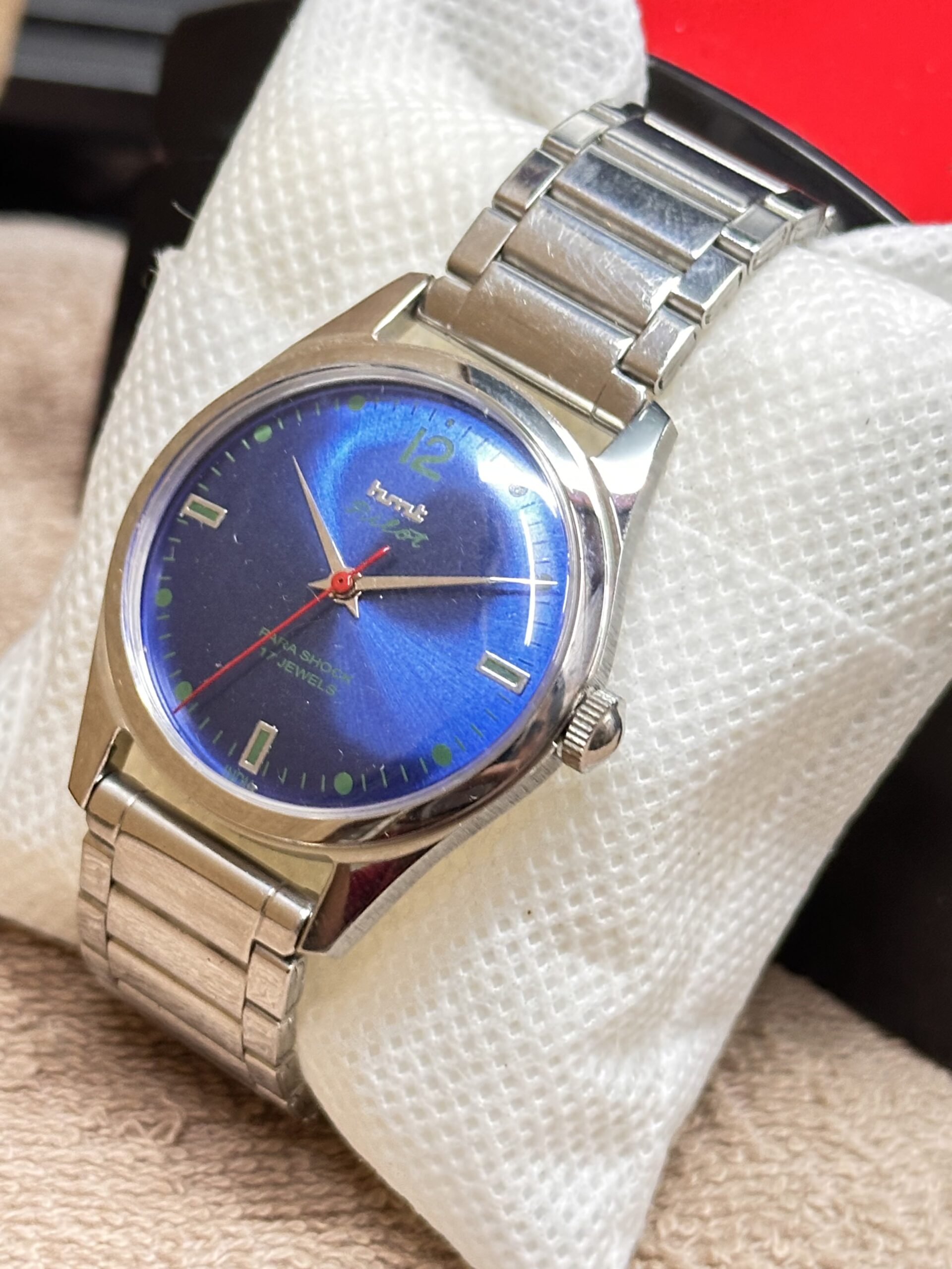 This authentic vintage HMT Pilot wristwatch is a timeless example of classic Indian watchmaking, designed for collectors and enthusiasts who appreciate mechanical heritage and everyday versatility. Featuring a reliable 17 Jewels hand winding movement, this mens watch delivers a traditional mechanical experience with smooth manual operation and dependable timekeeping. The stainless steel case in elegant silver tone measures 36mm excluding crown, offering a balanced wrist presence suitable for casual, classic, and dress or formal occasions. A striking blue dial enhances visual appeal while maintaining excellent readability, complemented by a stainless steel silver band that adds durability and refined character. Brand: HMT, Model: HMT Pilot, Movement: Hand Winding Mechanical, Jewels: 17 Jewels, Case Material: Stainless Steel, Case Color: Silver, Band Material: Stainless Steel, Band Color: Silver, Dial Color: Blue, Gender: Mens, Country of Manufacture: India. Lug Width: 40mm ensures a confident wrist fit and classic vintage proportions. Every photograph used in this listing has been personally captured to present the exact watch honestly and professionally, and the actual condition is even more impressive in person than it appears in the images. This genuine vintage watch has been carefully preserved, making it a perfect addition for collectors, retro fashion lovers, mechanical watch enthusiasts, and anyone seeking a classic hand winding dress watch with historical charm. Handling Time is 2 to 3 working days after receiving payment. Delivery Time is 3 to 4 working days within India and approximately 12 to 15 working days worldwide depending on destination and customs processing. A reliable choice for daily wear, special occasions, or thoughtful gifting, this vintage HMT Pilot stands as a symbol of enduring craftsmanship, mechanical precision, and timeless style that never goes out of fashion. It reflects the golden era of Indian horology and offers a unique collectible value for serious vintage watch collectors worldwide,